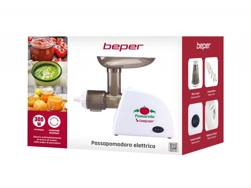 By placing the tomatoes in the practical tray, it automatically separates the waste peels from the tomato pulp. With reverse function and practical carrying handle. Overheating protection and stable non-slip feet. Body in abs and filter in stainless steel. Plastic tray and pusher supplied.