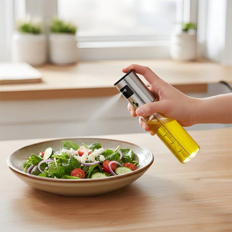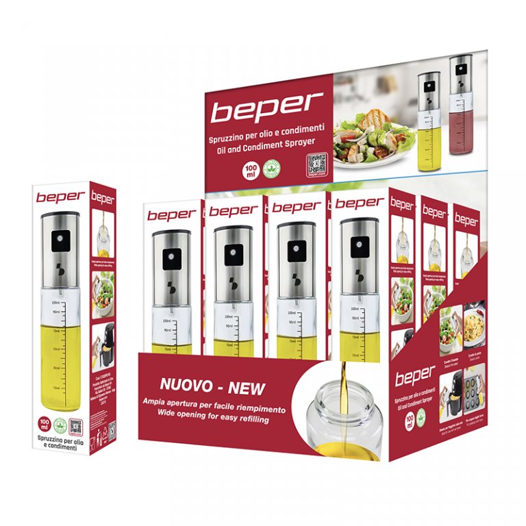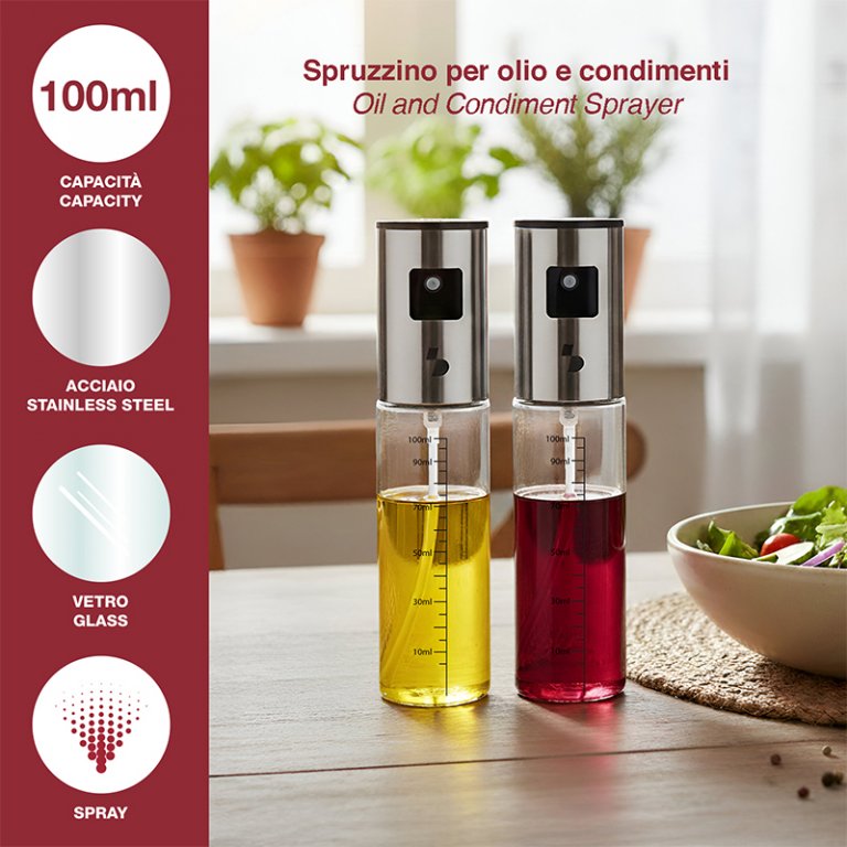 Also ideal for use with hot air fryers, spraying oil instead of using a brush during cooking and frying, precisely because it makes it easier to control the amount of oil.