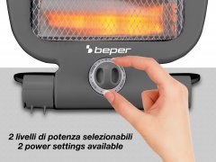 Compact, safe and efficient: the Beper Quartz Heater is the ideal solution for quick and convenient heating in any environment. With 2 quartz heating elements and 2 selectable power levels, you can choose the intensity of the heat to suit your needs. The foldable design minimises clutter when not in use, while the integrated handle makes it easy to carry wherever you need it. Maximum safety thanks to the auto shut-off function in the event of a fall, for worry-free use.