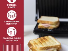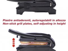 Compact, pratique et efficace, le Beper Grill est l’allié idéal pour préparer des toasts dorés, des sandwichs bien garnis, des grillades de viande, de légumes et de fromage en quelques minutes seulement. Son corps en acier et bakélite garantit durabilité et légèreté, tandis que ses plaques antiadhésives striées assurent une cuisson uniforme et sont faciles à nettoyer. Les plaques auto-ajustables s’adaptent à l’épaisseur des aliments, tandis que la poignée isolée thermiquement assure une sécurité optimale. Doté d’un crochet de verrouillage léger, de pieds antidérapants et d’un range-fil intégré, il est le choix idéal pour une cuisine ordonnée et fonctionnelle. Dimensions des plaques : 22,5 x 14,5 cm
