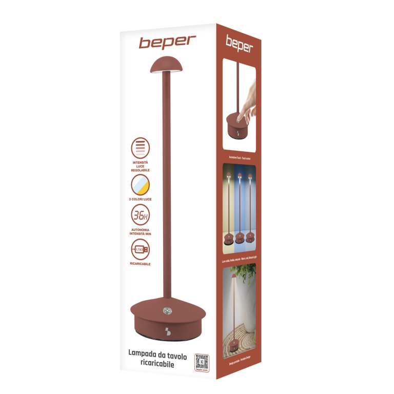 Éclairez votre espace avec style et praticité grâce à la lampe de table rechargeable Beper. Avec son interrupteur tactile et son design moderne, elle est parfaite pour votre bureau, votre table de chevet ou pour être emportée partout où vous le souhaitez. Une simple pression vous permet de choisir entre la lumière chaude, froide ou naturelle, tandis que le maintien du bouton permet de régler facilement l'intensité de la lumière en fonction de l'environnement et de l'heure de la journée. Grâce à la batterie haute capacité intégrée, elle offre une grande autonomie (jusqu'à 48 heures à l'intensité minimale). Rechargeable grâce au câble USB fourni, elle est la solution parfaite pour ceux qui recherchent la fonctionnalité, la liberté de mouvement et une atmosphère personnalisée.