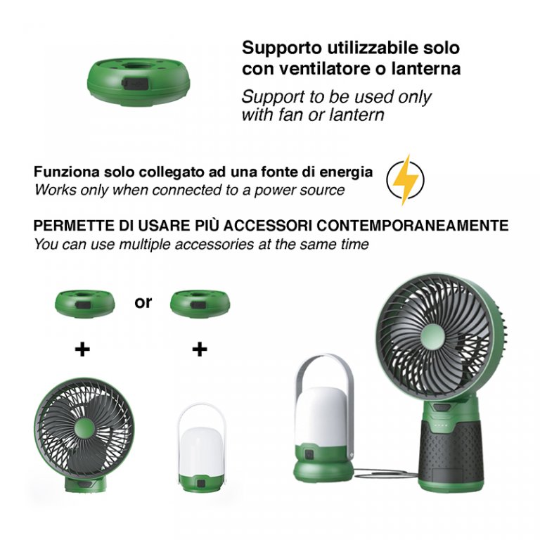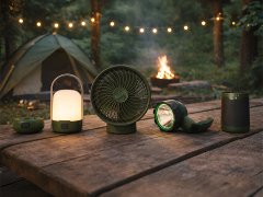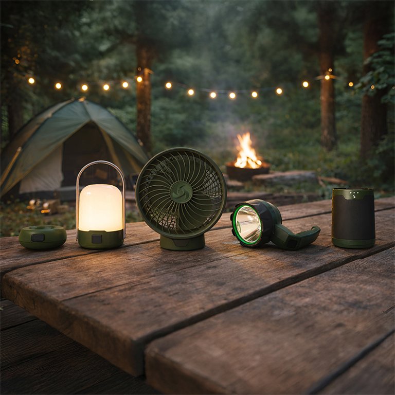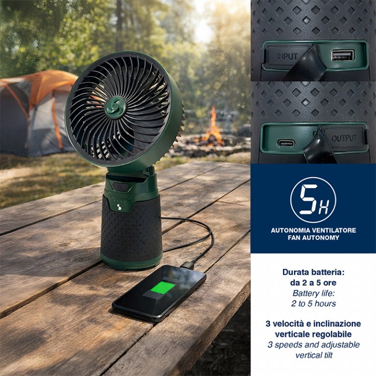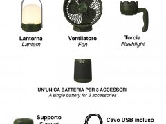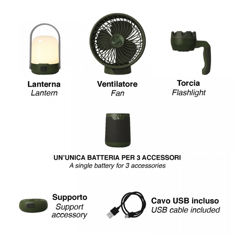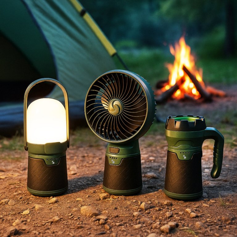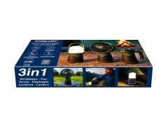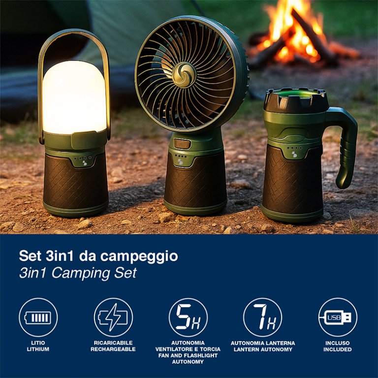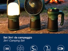 Set 3 en 1 pour le camping : ventilateur + torche + lanterne