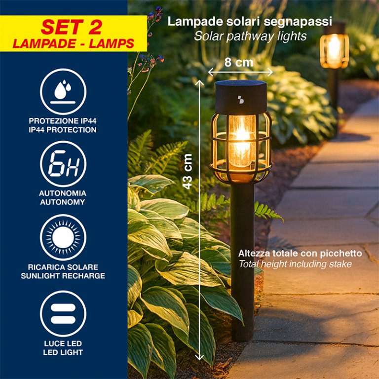Set de 2 lampes solaires LUCEA pour éclairage de chemin