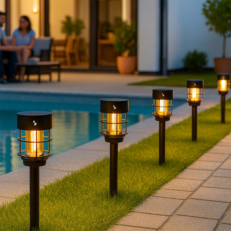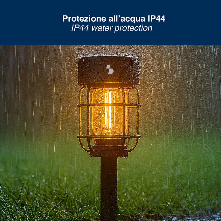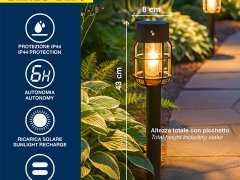 Le piquet permet de fixer les lampes au sol à n'importe quel endroit du jardin, à côté des parterres de fleurs ou le long des allées.