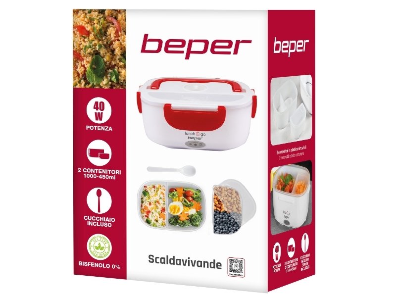 Pratico scaldavivande elettrico in abs BPA FREE con contenitore interno da 1L in plastica e piastra riscaldante in acciaio. Contenitore removibile per una facile pulizia. Con luce di funzionamento. Coperchio dotato di ganci di chiusura, maniglia per un facile trasporto e valvola di sfiato. Un contenitore con coperchio dalla capacità di 450ml e posate in plastica in dotazione. Cavo rimovibile.
