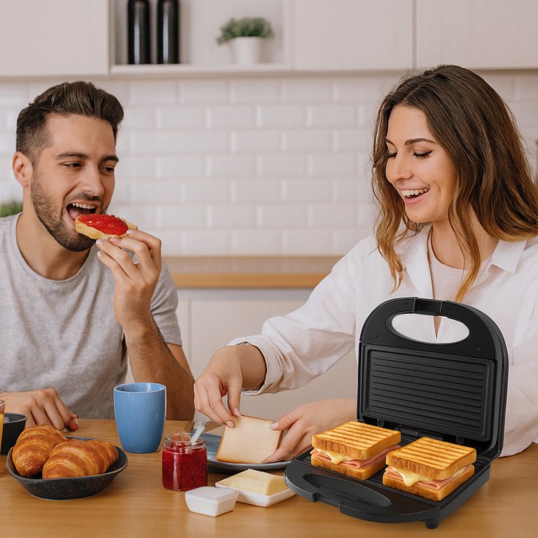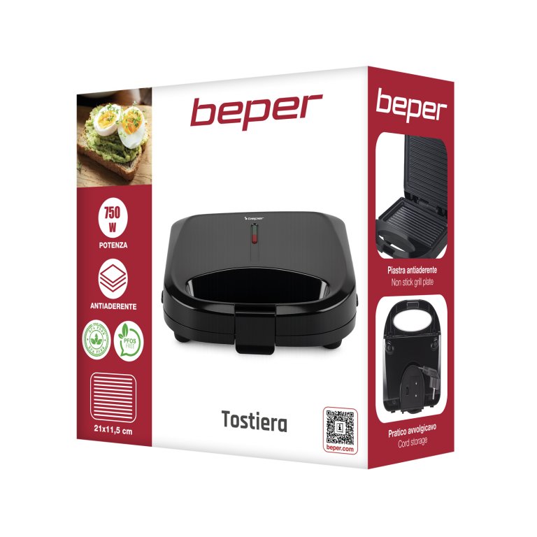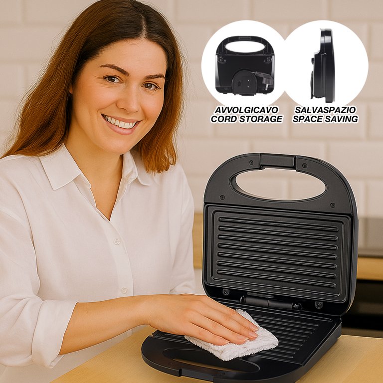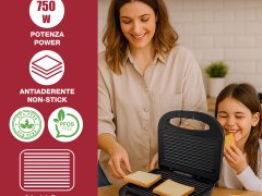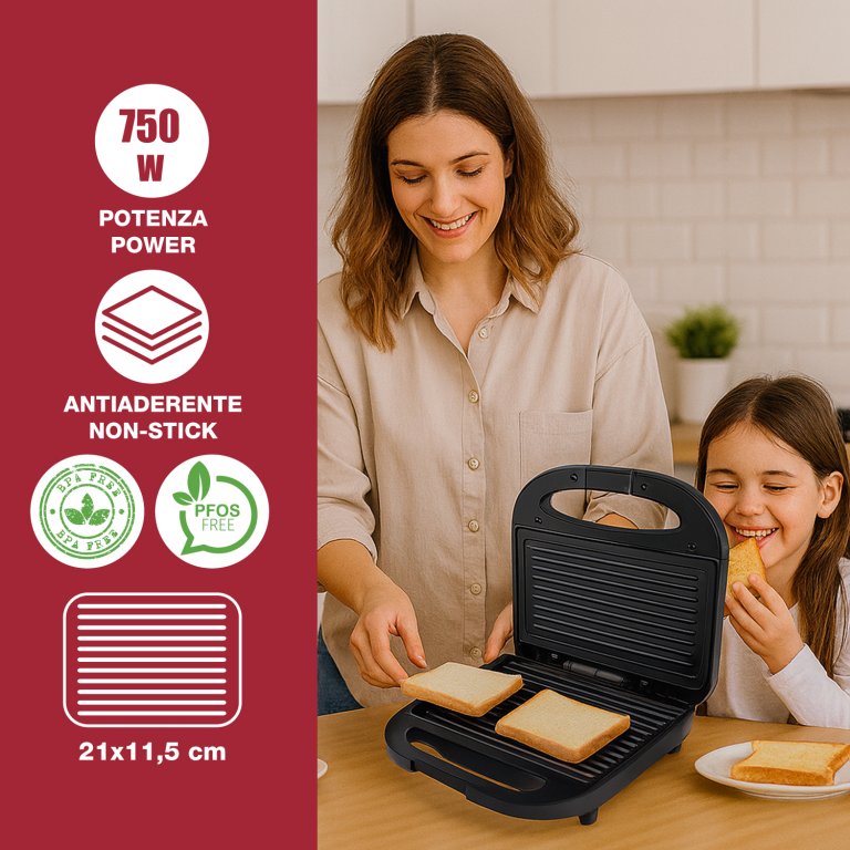 Tostiera ideale per la preparazione rapida di toast, panini e altri alimenti da grigliare.