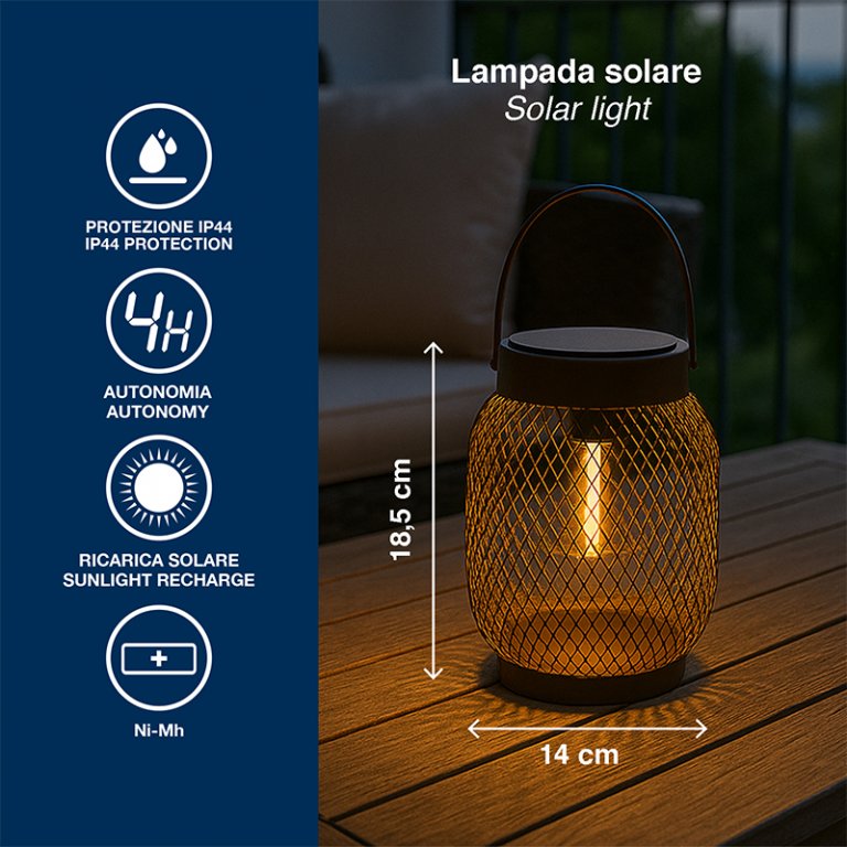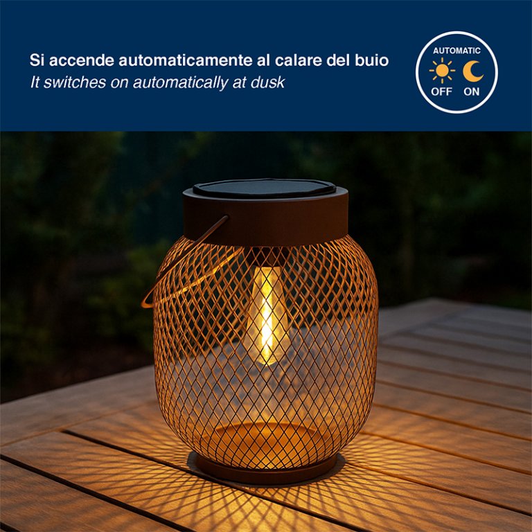 Lampada a led ideale per decorare e illuminare giardini, balconi e spazi esterni, questa lampada solare crea uno speciale effetto scenografico.