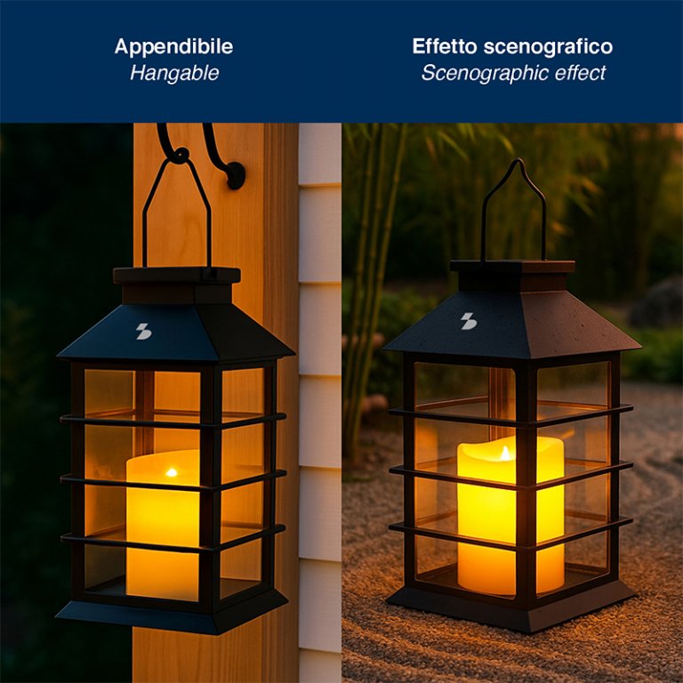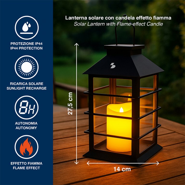 Lanterna solare con candela effetto fiamma CANDELA