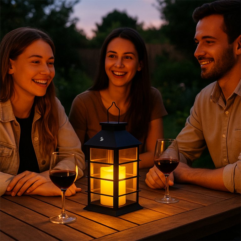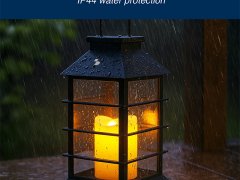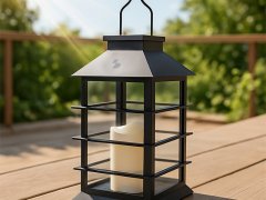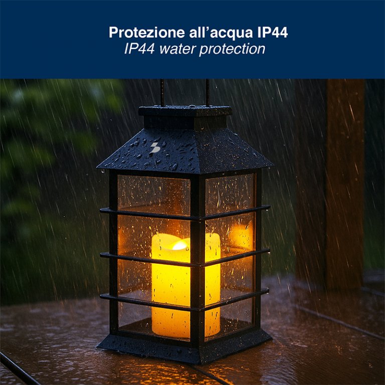 Lanterna solare dallo stile classico ed elegante, perfetta per decorare e illuminare giardini, balconi e spazi esterni. Al suo interno è presente una candela con luce LED effetto fiamma, che crea un’atmosfera calda e accogliente, simulando il tremolio della fiamma reale senza rischio di incendio. Funziona a energia solare: si ricarica alla luce del sole e si accende automaticamente al calare del buio, offrendo fino a 8 ore di illuminazione. Dotata di gancio in metallo per essere facilmente appesa, è ideale anche come luce decorativa per eventi all’aperto. La struttura resistente e la protezione IP44 la rendono adatta all’uso esterno in ogni stagione.