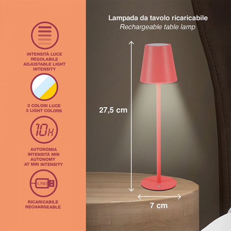Lampada ricaricabile da tavolo AURA Corallo