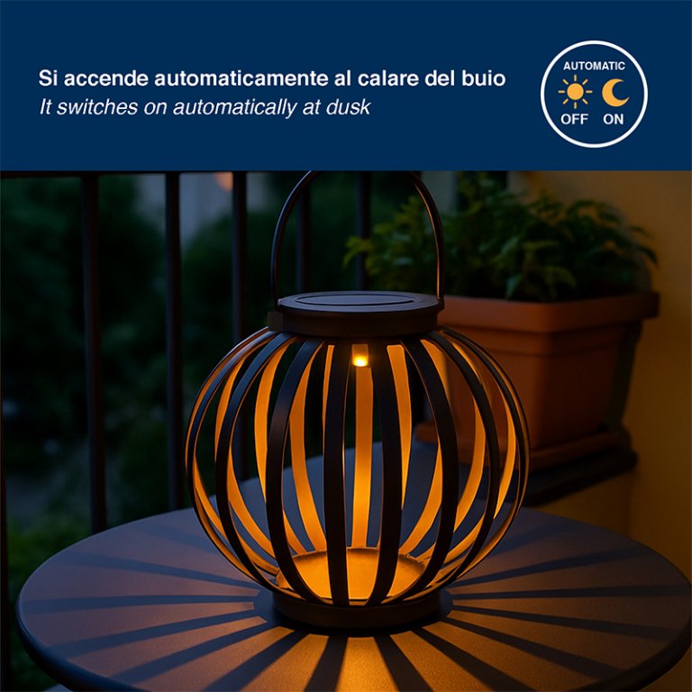 Lampada a led ideale per decorare e illuminare giardini, balconi e spazi esterni, questa lampada solare crea uno speciale effetto scenografico.