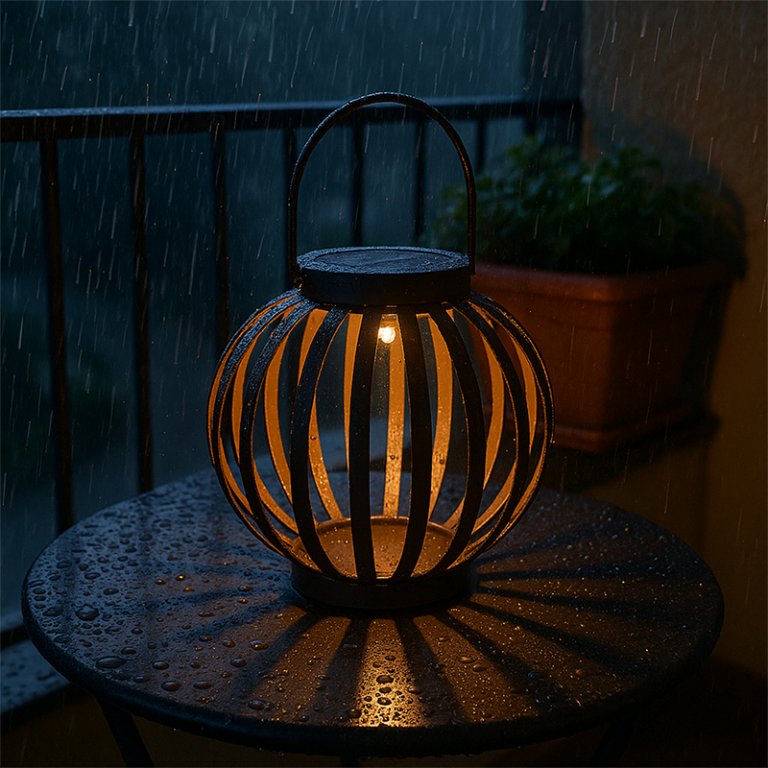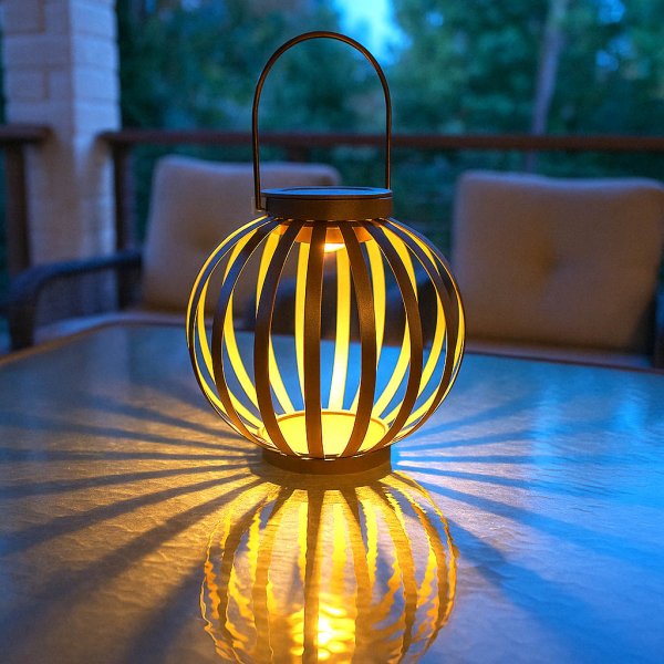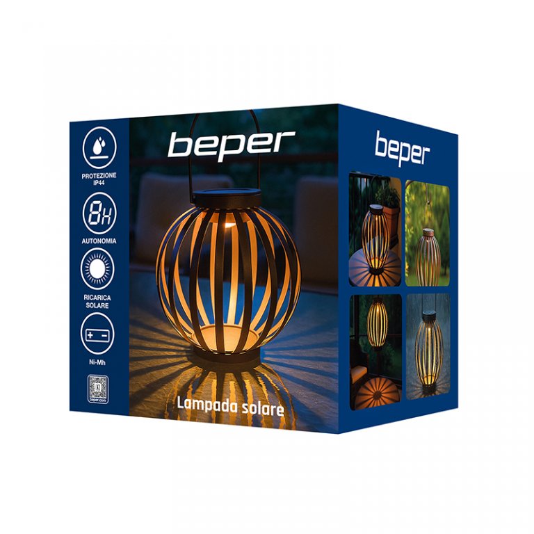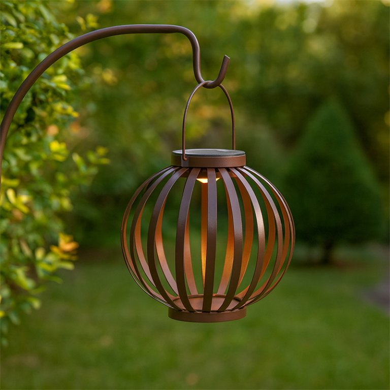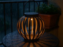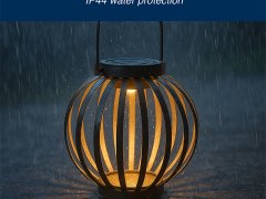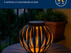Dotata di luce LED, crea un motivo decorativo grazie al riflesso della luce sul paralume, proiettando giochi di luce suggestivi. Si accende automaticamente al calare del buio, illuminando fino a 8 ore. Realizzata in ferro, è dotata di pannello solare e si ricarica con la sola luce del sole. La protezione IP44 la rende adatta all’uso esterno.