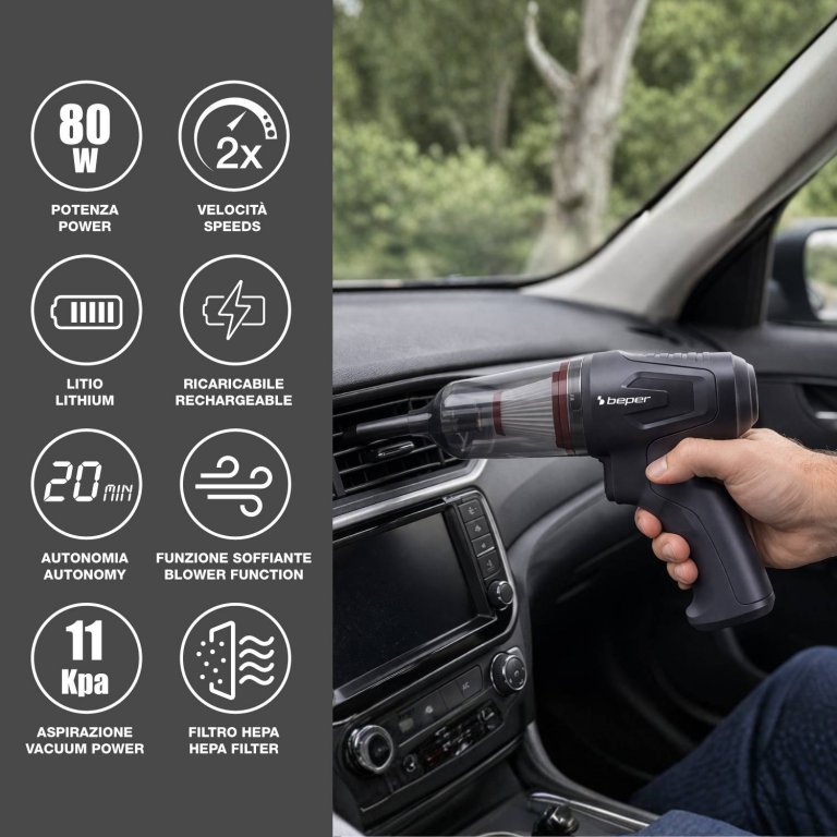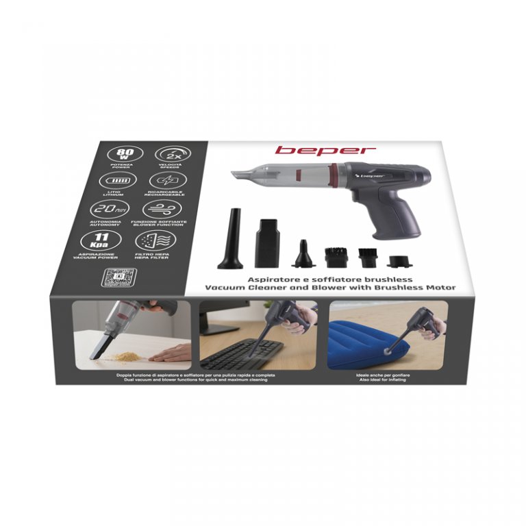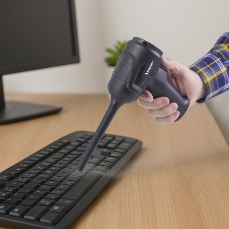 Práctico mini aspirador y soplador sin escobillas, ideal para una limpieza rápida y versátil en diversos espacios, como el hogar y el coche. Gracias a su doble función de aspirador y soplador, es perfecto para eliminar polvo, migas y suciedad, así como para eliminar rápidamente residuos de teclados, rejillas de ventilación o superficies pequeñas. Equipado con 2 velocidades, una potencia de hasta 80 W y una succión de hasta 11 kPa, garantiza un alto rendimiento a pesar de sus dimensiones compactas. Funciona con una batería de litio recargable, que permite una autonomía de hasta 25 minutos y se recarga cómodamente mediante USB tipo C. Se incluyen 6 accesorios específicos para cada necesidad de limpieza y el filtro HEPA es extraíble y fácilmente lavable, lo que garantiza un mantenimiento sencillo y rápido.