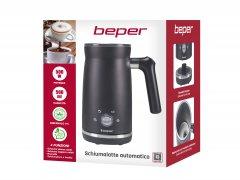 Espumador de leche automático con 4 funciones: Espuma densa caliente; Espuma densa y caliente; Espuma ligera y caliente; Calentamiento; Espuma fría. Capacidad del recipiente: 500 ml. Calienta hasta 300 ml y espuma hasta 150 ml. Carcasa de plástico de doble pared con revestimiento interior antiadherente fácil de limpiar. Batidor de espuma extraíble de acero inoxidable. Asa ergonómica y tapa transparente. Luces LED de funcionamiento y apagado automático. Protección contra sobrecalentamiento.