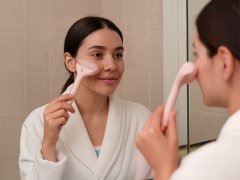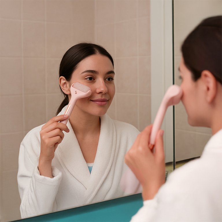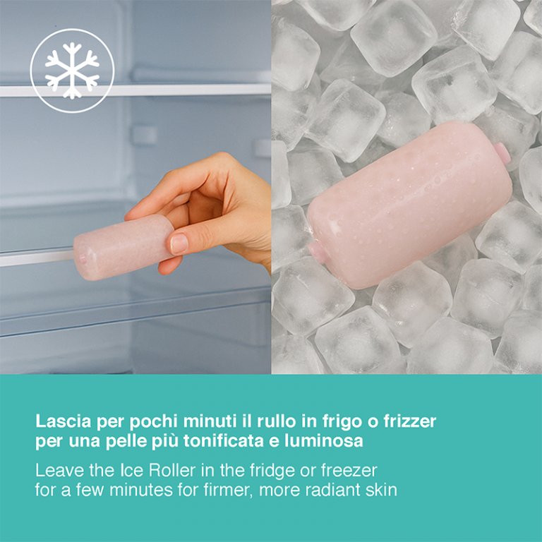 El rodillo de hielo Ice Roller tiene un efecto masajeador y refrescante, favorece la circulación sanguínea y ayuda a suavizar las líneas de expresión, así como a reducir la hinchazón y las ojeras. Al dejar la cabeza del rodillo en la nevera o en el congelador, gracias al efecto helado sobre la piel, los músculos faciales quedan más tonificados y la piel más luminosa, lo que garantiza el alivio del estrés y la tensión. Para un efecto refrescante instantáneo y un uso más rápido, basta con dejar el rodillo en el congelador durante unos minutos. Ideal para aplicar sérums y cremas sobre la piel, favoreciendo su absorción, además de aportar luminosidad, refrescar y revitalizar la piel.